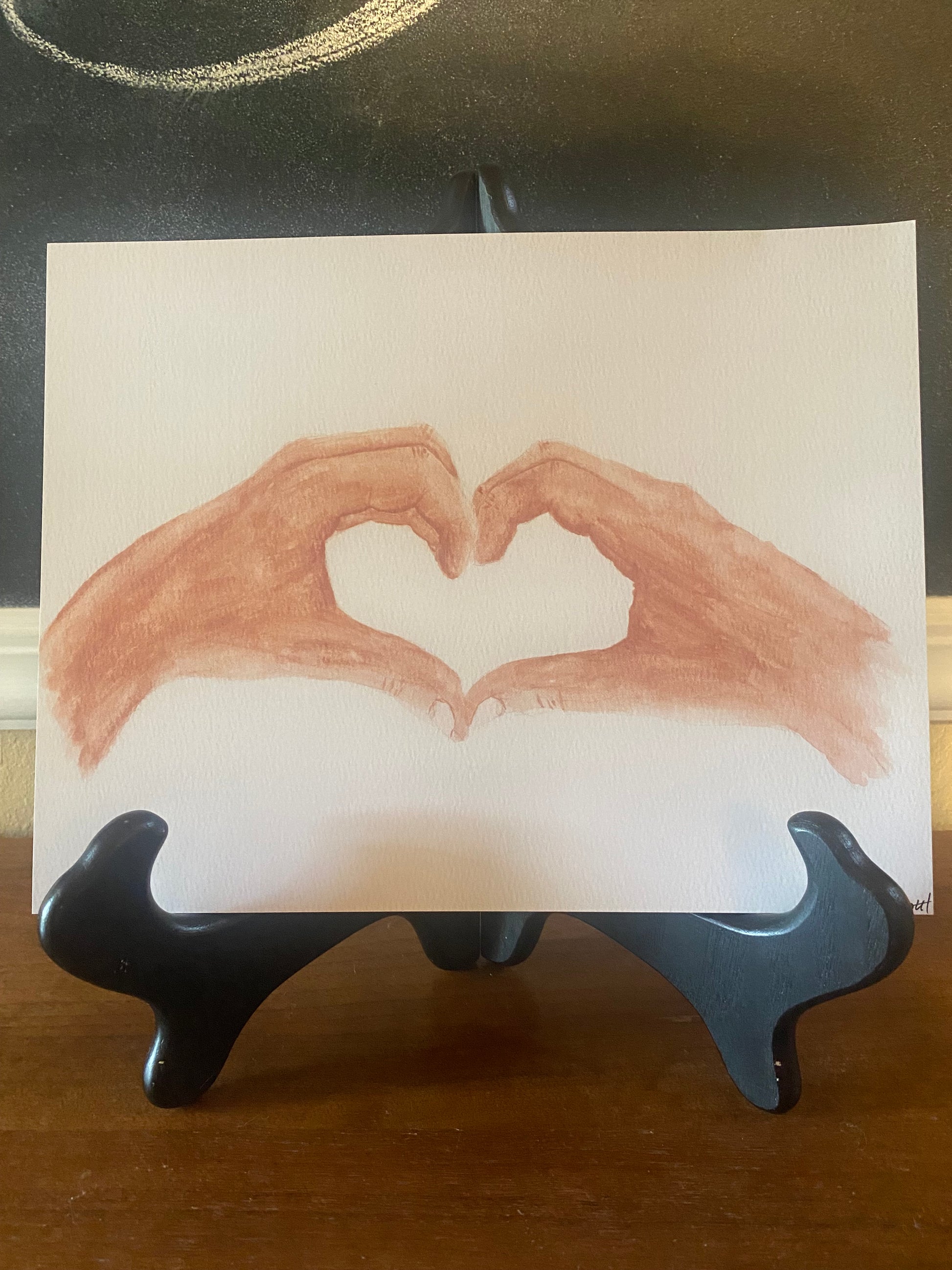 Bursting with color and joy, the Heart Hands Watercolor Print adds a playful touch to your space. At 8.5"x11", this charming print features hands forming a heart, making it the perfect cheerful accent to brighten any room or gift to someone you love.