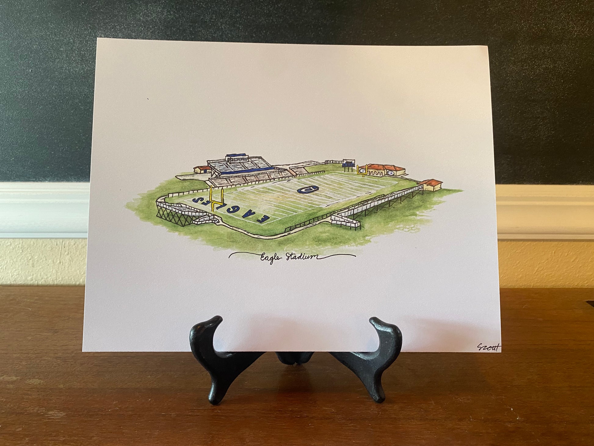 Celebrate your Decatur Eagles spirit with this vibrant 8.5"x11" watercolor stadium print! Bursting with colorful charm, it captures the heart of Decatur, TX, making it a perfect keepsake for fans and locals alike. Brighten your space with a playful tribute to your favorite team’s home turf!